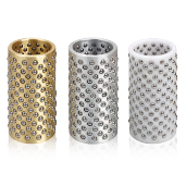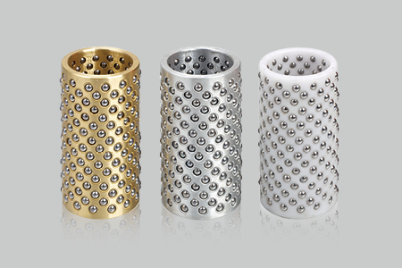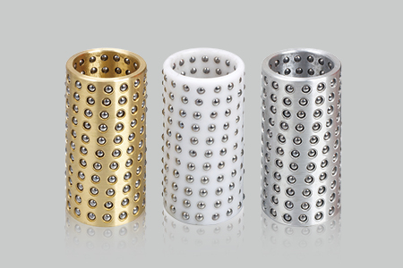 FZH(铜基)、FZL(铝基)、FZP(树脂基)钢球保持固,分别以铜合金、硬铝合金、POM树脂为基体,并在其外圆表面上,加工出排列有序、大小适当,形状特殊的孔穴,在其孔穴中镶入滚动轴承钢球。采用最新的沟槽圆周锁球工艺,有效地解决了传统式锁球和压痕式锁球不能完全防止钢球脱落的难题。